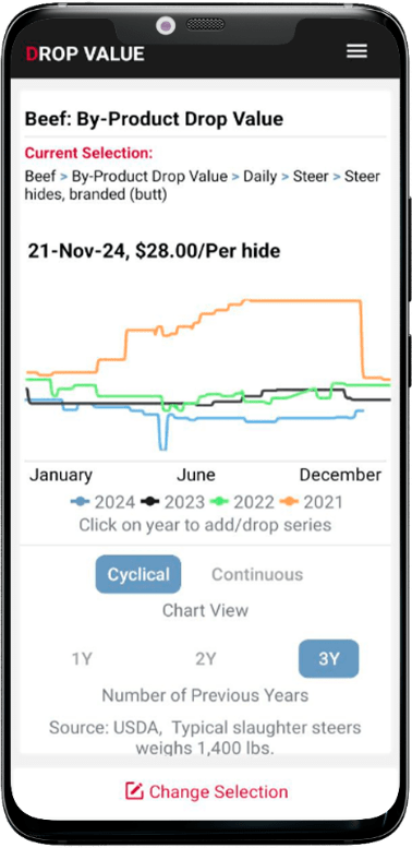 Comprehensive historical volume and price data for cattle and hogs.