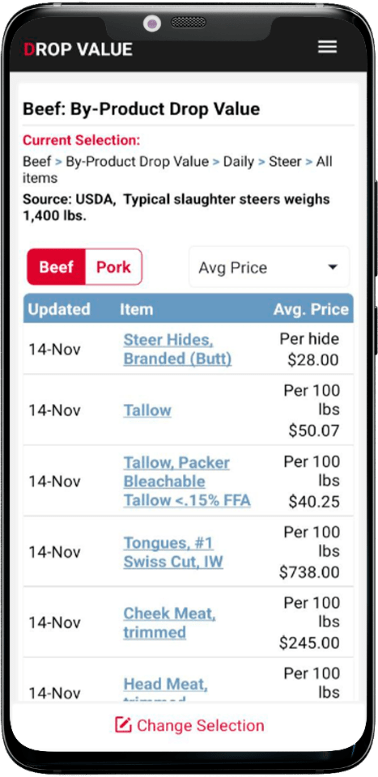 Prices and volumes of offal and other by-products.