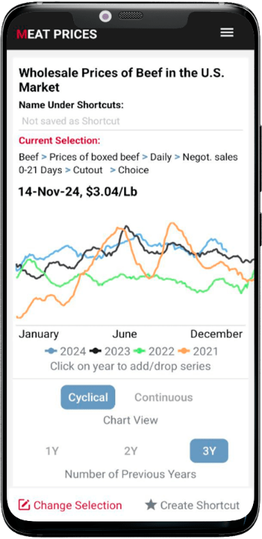 Our free weekly email report features market commentaries for both Beef & Pork, along with charts presenting six years of historical data in tables for easy year-to-year comparison.