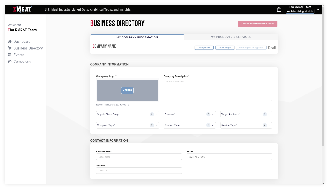 With EMEAT Advertising you can publish your Business Info at no cost. All you have to do is Sign In to your EMEAT account and activate the Advertiser module.