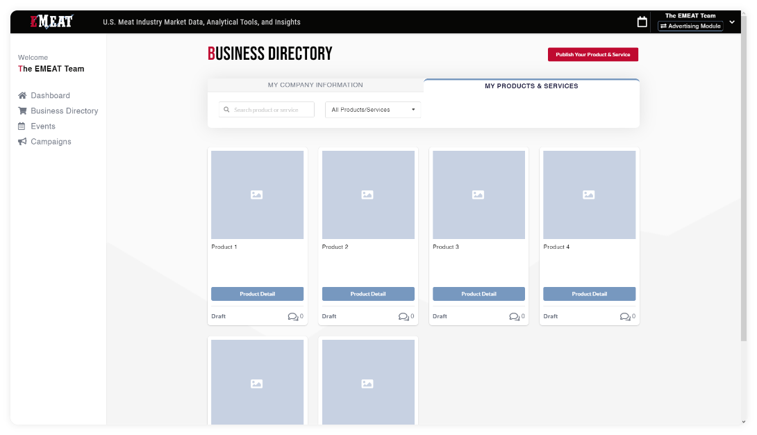 When you publish your Business Information, it will automatically appear in our Business Directory section, where EMEAT users can see all your company Products & Services information, enter comments and questions that will be forwarded to you.