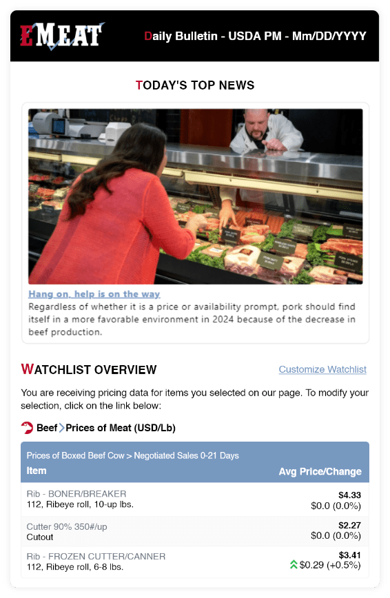 This customizable feature keeps you up to date with the latest meat industry insights, delivering key data straight to your inbox every day: